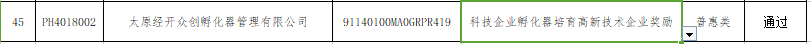 太原經(jīng)開眾創(chuàng)孵化器管理有限公司入孵企業(yè):太原經(jīng)開眾創(chuàng)軟件開發(fā)有限公司、山西成長天使電子商務(wù)股份有限責(zé)任公司在公示名單內(nèi)。太原經(jīng)開眾創(chuàng)孵化器管理有限公司也同時獲得科技企業(yè)孵化器培育高新技術(shù)企業(yè)獎勵。